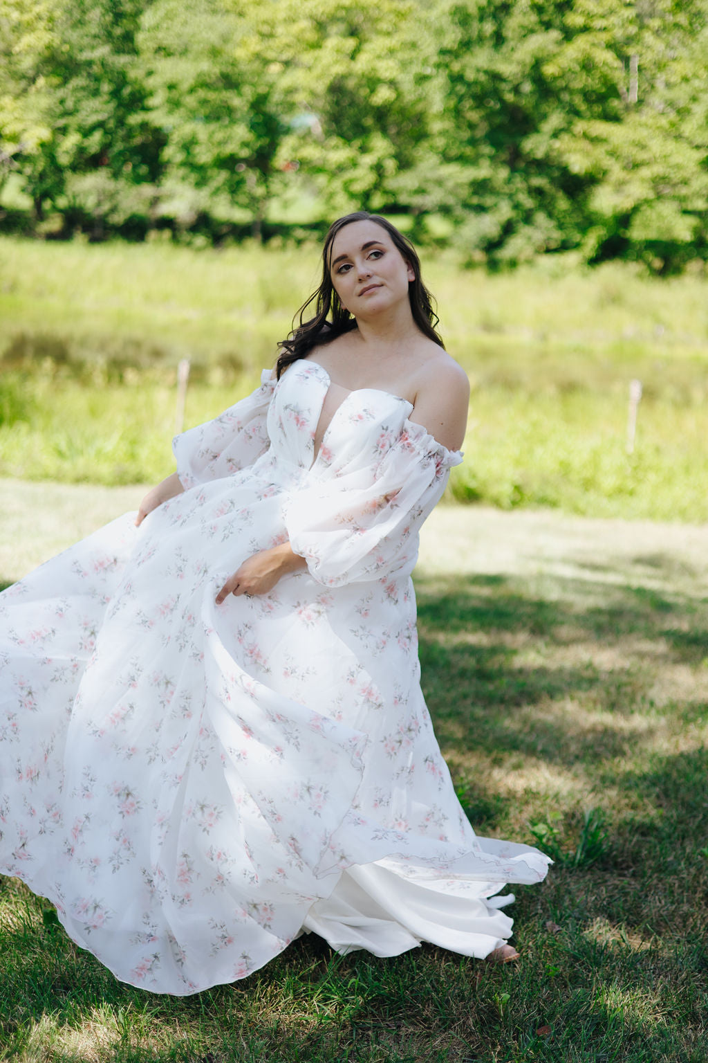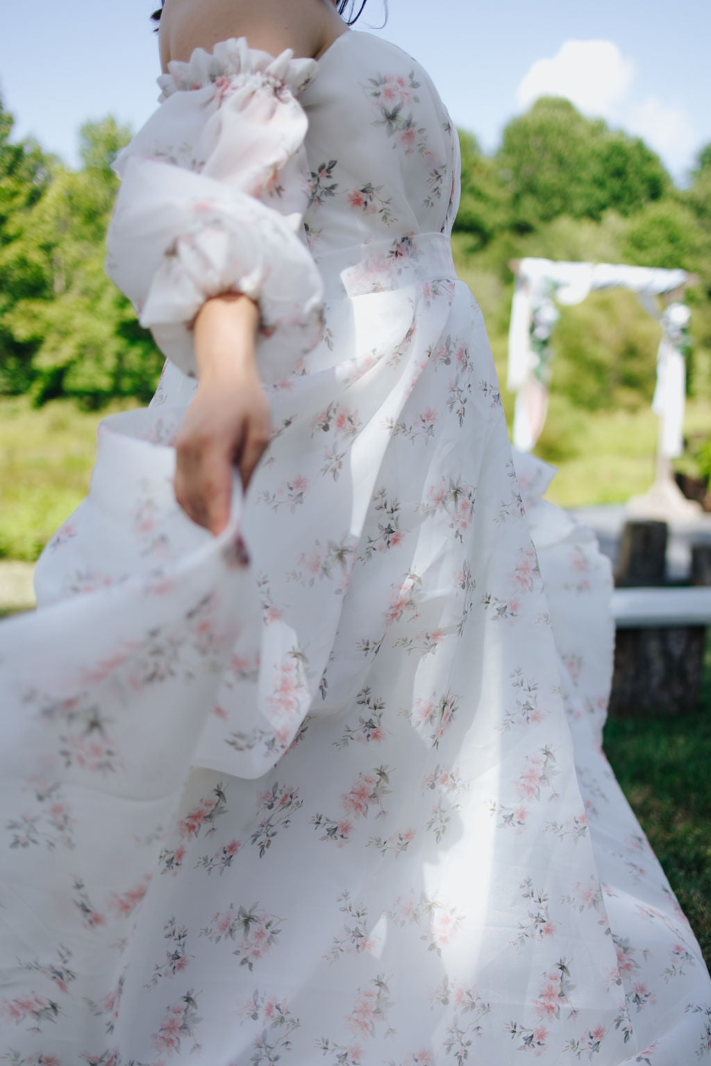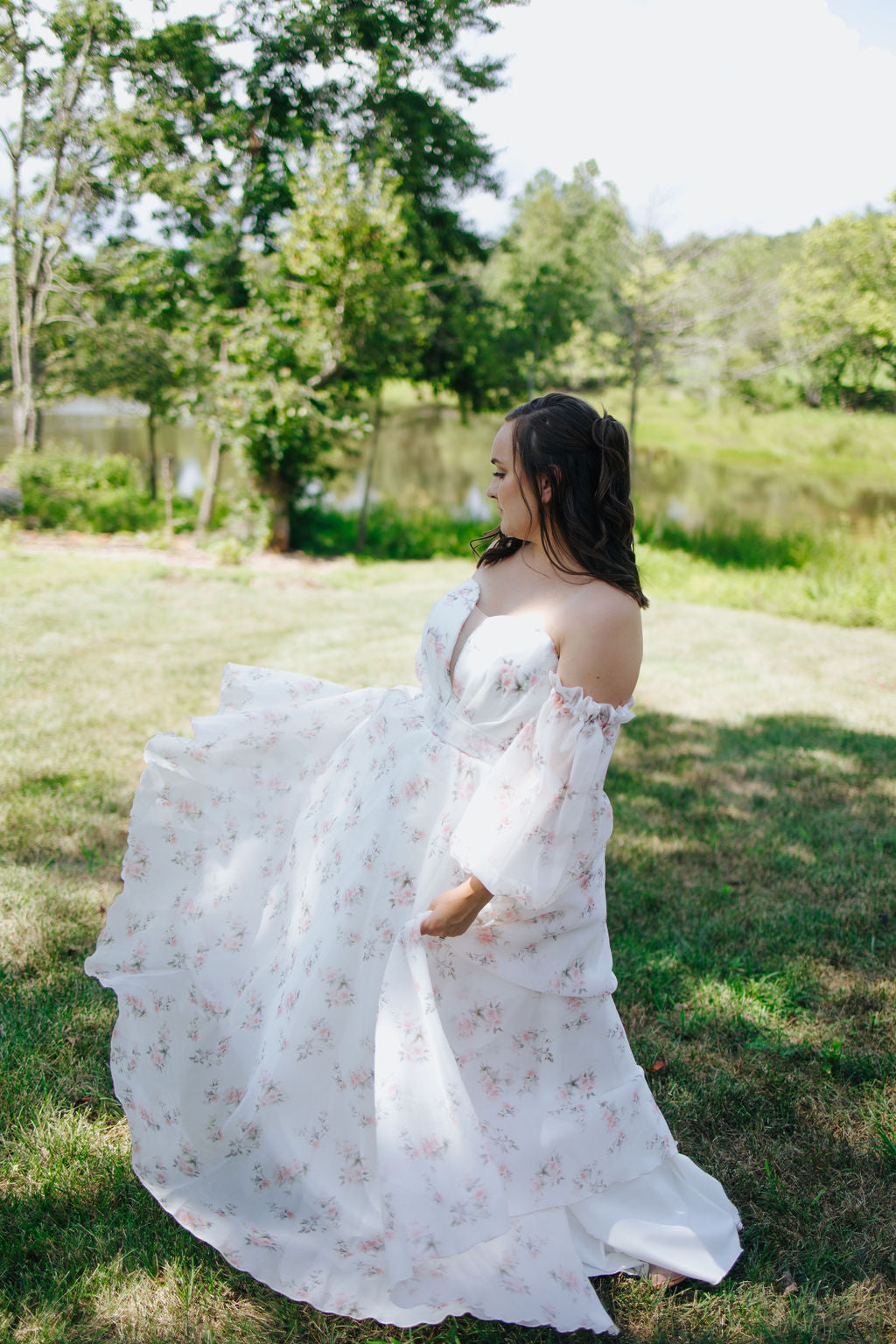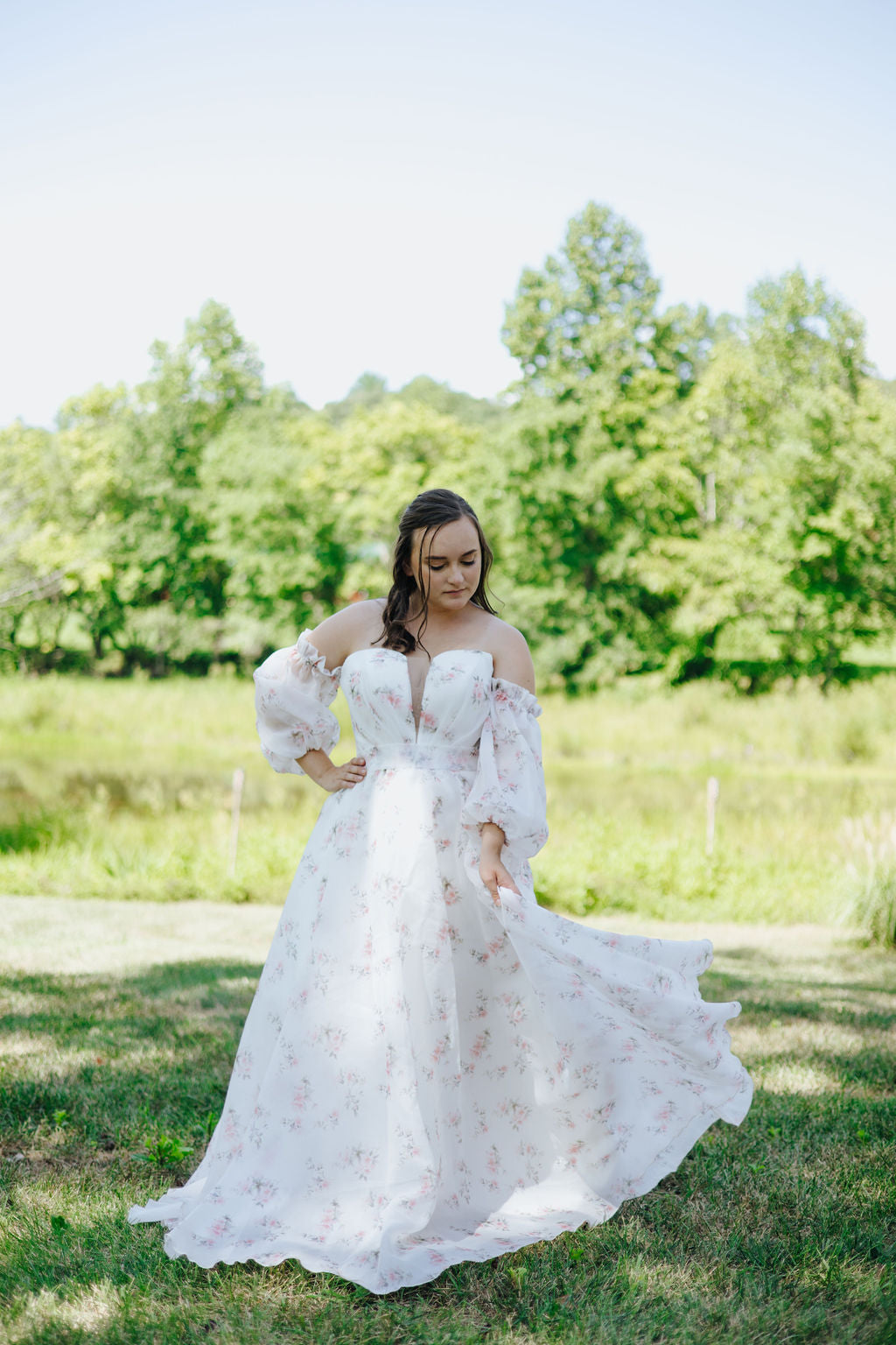 Crafted from luxurious organza, this A-Line Wedding Dress features enchanting floral paintings and an off-shoulder design for a romantic, yet rustic look. Wrapped in subtle elegance, the sweetheart neckline, corset bodice, and strapless design lend a touch of poise for a beautiful bridal look. Perfect for the modern bride that exudes timeless sophistication. Specifications: